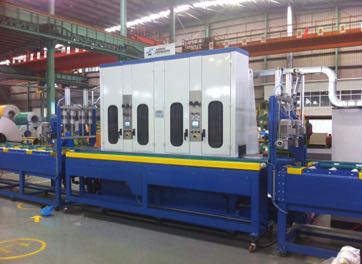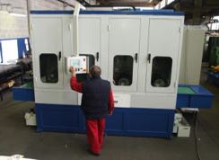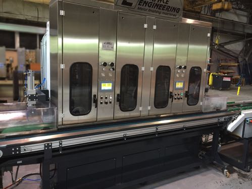 SP design foreseen finishing units on the top with independent adjustment for the sequential processing of the parts, and a transport belt to feed the parts through the process from loading area to unload area.